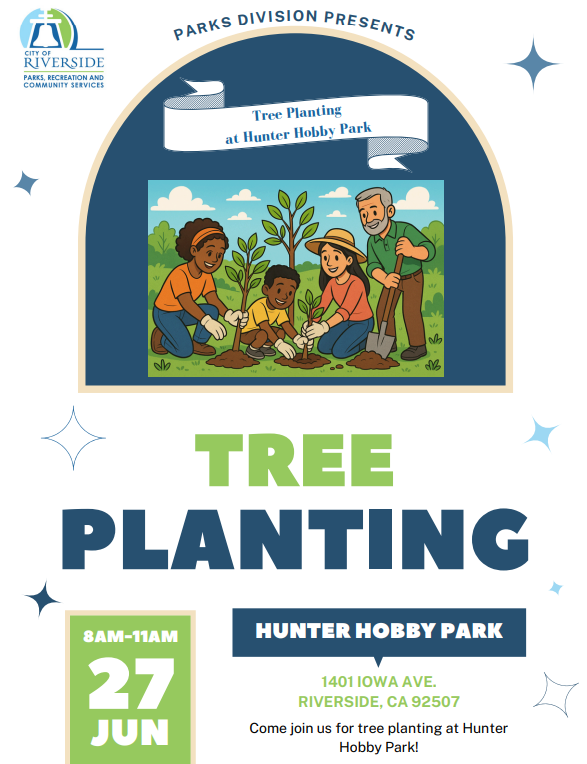 Join the City of Riverside's Parks, Recreation and Community Services department for tree planting at Hunter Hobby Park.